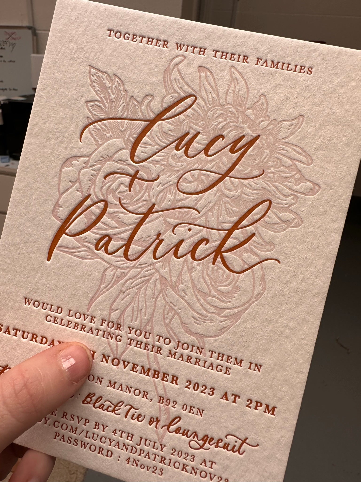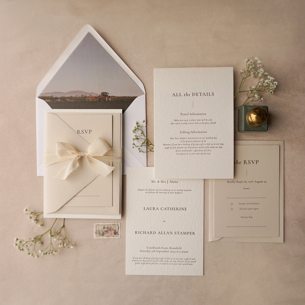 When it comes to your wedding stationery we know what works best. In our opinion letterpress is the height of luxury printing but we know budget doesn't always allow. We are here to guide you through and advise on what pieces and paper type will suit your design and budget the best.